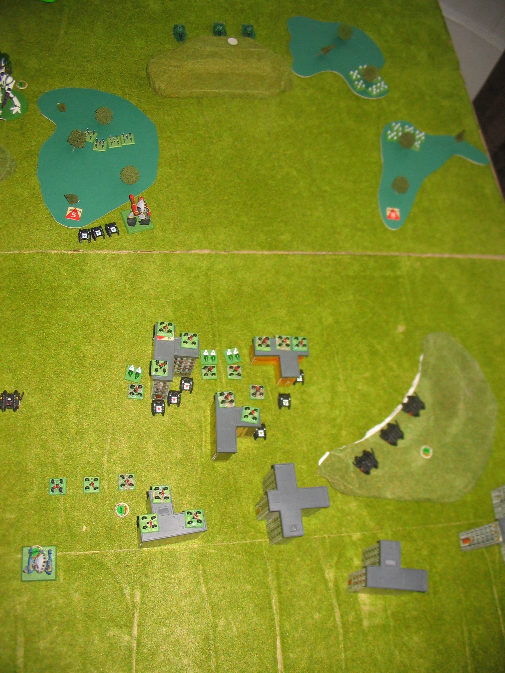 The game gets underway with a major battle instigated in the centre of the board on my latest piece of terrain! When I put the building together [ viewtopic.php?f=28&t=24336 ] I hadn't envisioned that it would be the focus of such a brutal battle!