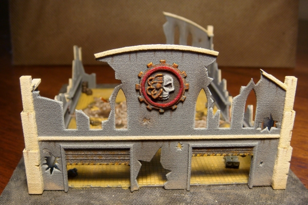 Just realized I never put up a finished shot. I had thrown on a bunch of black soot in the windows and weathered the ground floor edges. In typical fashion, I'll periodically add more garbage as I feel like it (read : happen to be at the hobby store and see fun plasticard bits/junk yard/randomly break something at the house) but she's going on the shelf.