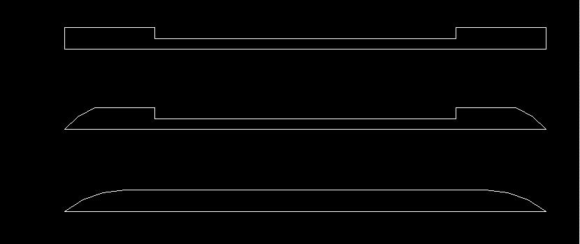There are three cross sections, 1st is a road with narrow footpath either side with vetical edge. 2nd road has narrow footpath with bevelled edge & 3rd is road only with bevelled edge.