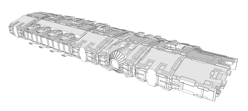 Also, I've cut the ship up in components. This will allow me to make variants of the prow and main weapon system: