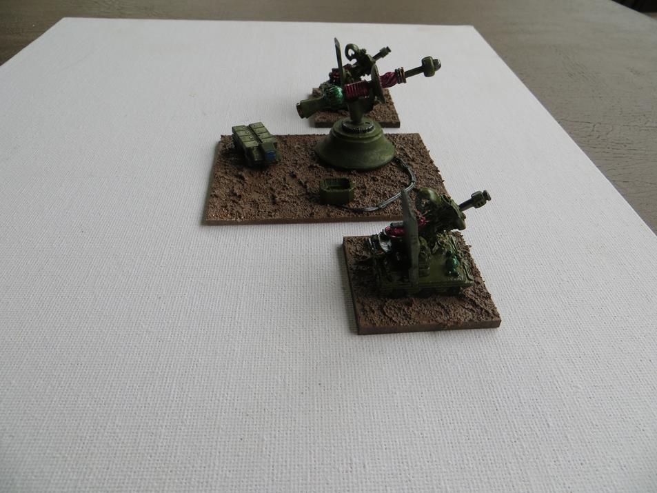 From memory- Big weapon is BMM137 25/28mm Uranian Heavy Weapon by Blue Moon Manufacturing. 2 vehicles are SF0065 (STAS11 2000) 6mm AA Point Defence by Scotia Grendel.