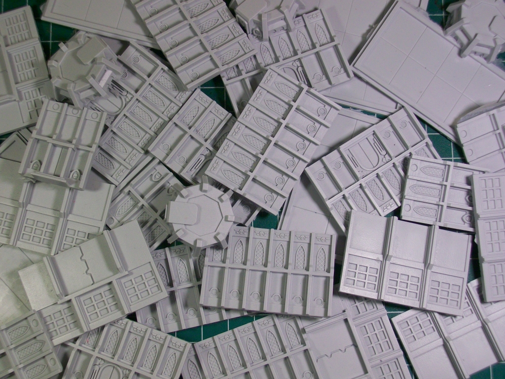 These pieces have been cast from the individual part molds - they'll be used to create the master production molds so I can crank out buildings (all 400 of them so far...eep)