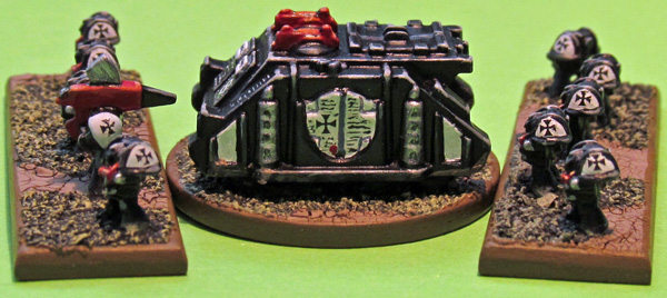 People would probably run BTs more around assault with less shooting than a normal SM army. The list has no Devestators or Librarians and other restrictions on shooty units. Black Templars also unusually train their Scouts (or Neophytes) alongside regular marines rather than in a separate formation. This removes the option of boosting activation numbers with cheap Scout formations but allows for larger, tougher formations to be fielded (5 bikes plus 3 neophyte bikers is a better Thunderhawk load-out than 5 bikes with 3 left-over, unable to be used spaces). The options you suggest could be good, but the list is still flexible and could potentially run well as a pure drop army, an air based army or a ground based/tank army or some combination of the three. Sticking a character (probably a Chaplain) with the Assault Terminators would be a good choice to make best use of their 2+ CC. Stormtalons are slightly better than Thunderbolts at killing pure AP formations but worse against all other targets. Their main advantage is the extra reliability of the 1+ initiative. Thunderhawk Transporters allow for all drop armies with vehicle support unlike in the codex list, but I haven't tested this yet (I only relatively recently took over the list and need to get more games in with it).
