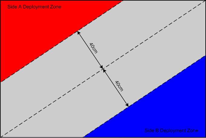 Once players have chosen their armies, the scenery has been laid out and objectives have been placed, the areas where the armies can be set up (or rather deployed) must be decided.