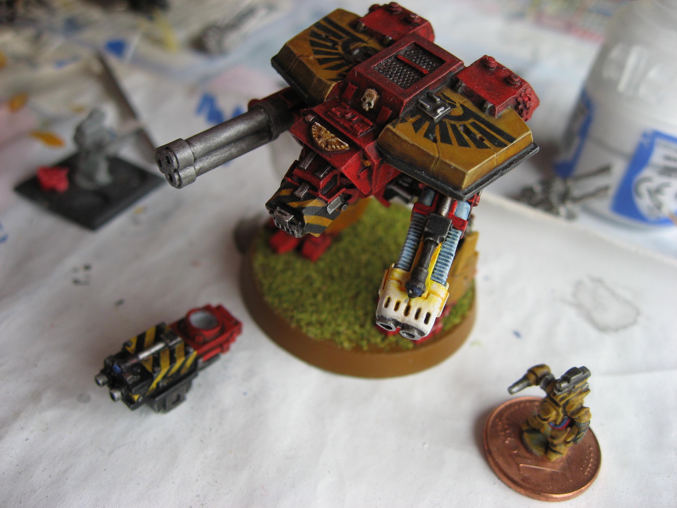 Parker ink cartridge end for the mounting joint. As it turned out this bit was the essential component that made the whole thing work. It was the right diameter to fit snugly over the Warhound weapon ball-joint and soft enough to flex allowing it to grip. Will remember that for future builds!
