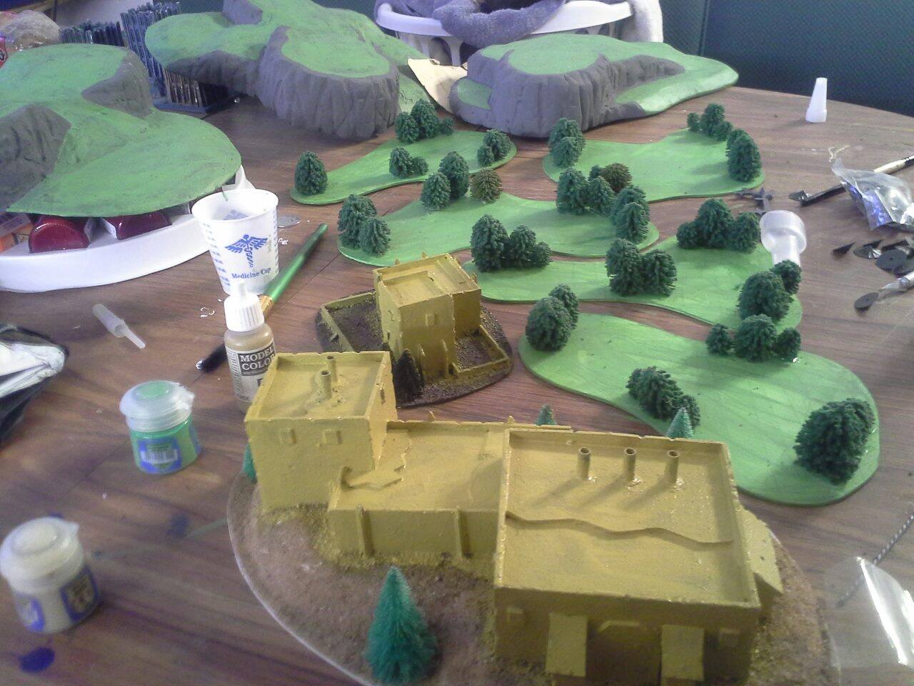 That's some great stuff! Couple questions, how'd you get the slopes on the terrain? I've wanted to create hills that don't have overly aggressive slopes and your work is exactly what I envisioned. Second, where'd you find those trees? I like how they scale with the models