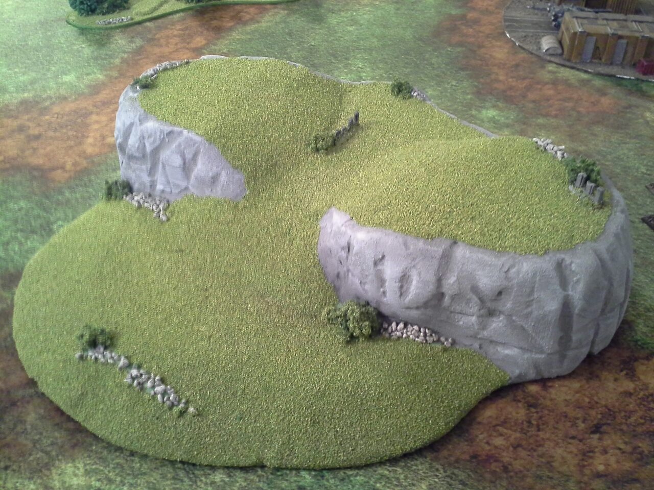 Ya that part of terrain has always been a pet pev of mine, I want to scream when I see ridged stuff. So I shaved off as much as I could with a knife and sand paper then what I did was cover the entire thing(cept bottem) with a polyfilla (stuff you use to fill in drywall holes) and then sand it down a bit to get rid of the bumps and bits. This also helps if you want to glue stuff to it like I did with the rocks ruins and bushs by allowing you to super glue it with out melting the foam. Just be careful when sanding too much cus if the foam shows threw then you might have a problems later.