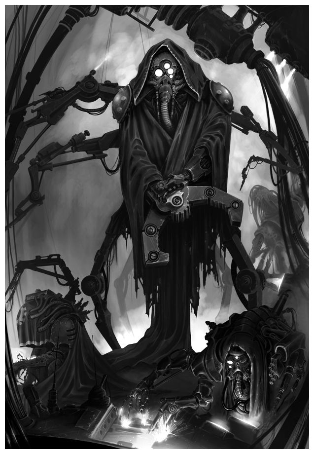 Needs esoteric gribblies, tubes, and other general creepiness. If they're willing to do this to themselves then just imagine what horrifying things they'd be willing to do to those menials they treat as raw materials?