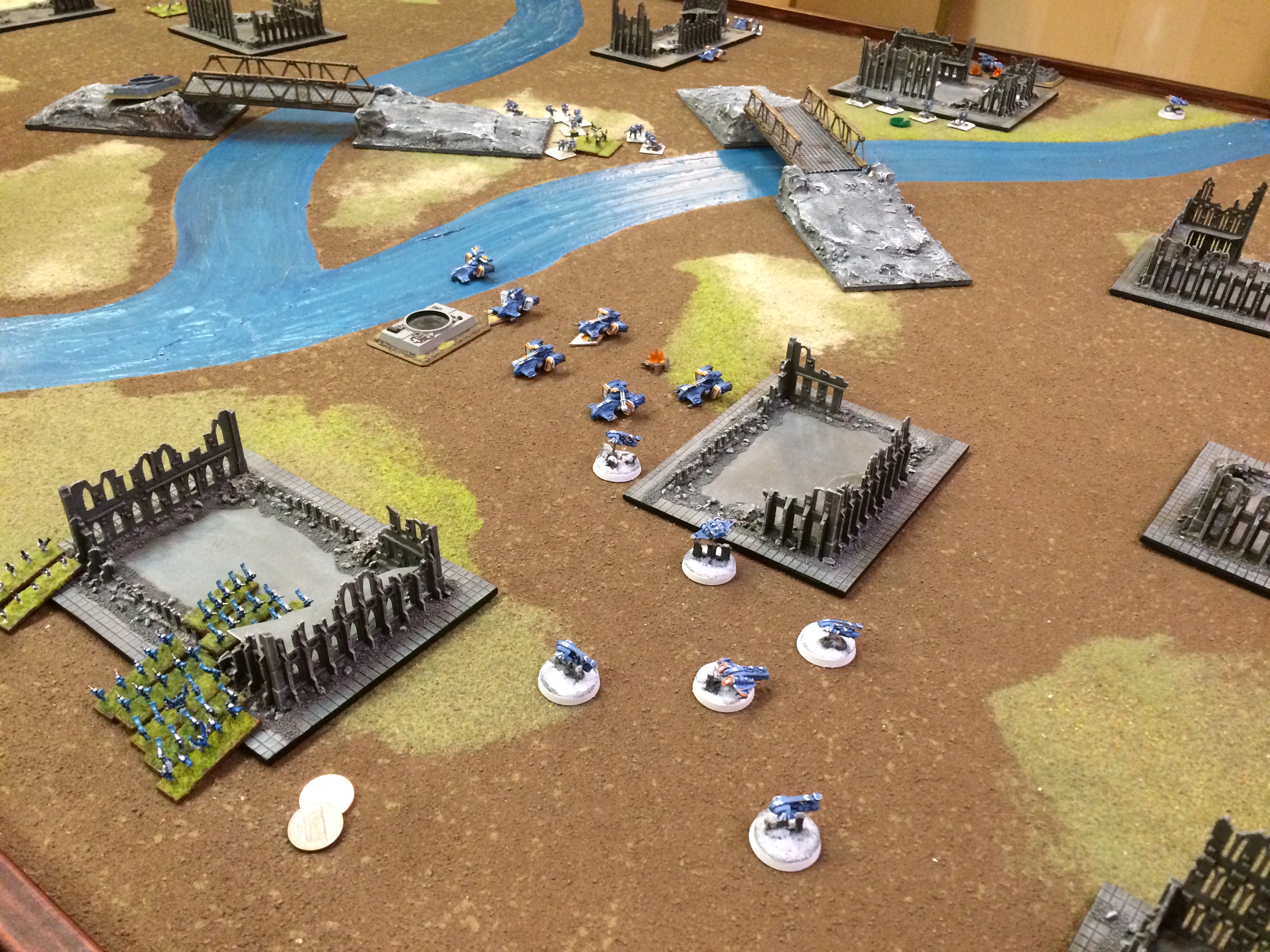 End of turn one AW in a Vampire Raider assault a Orca dropship and some Crisis Suits. They dispatch that in relative ease and consolidate into some woods close by. Next turn they assault a unit of hammerheads and feeling good win easily. They then consolidate into a building near some battlesuits. Turn 3 they assault the Battlesuits and make quick work of them. Basically taking out close to 900pts, love my aspect Warriros (SS and DA and Ex and Aut). I love it when a plan comes together.