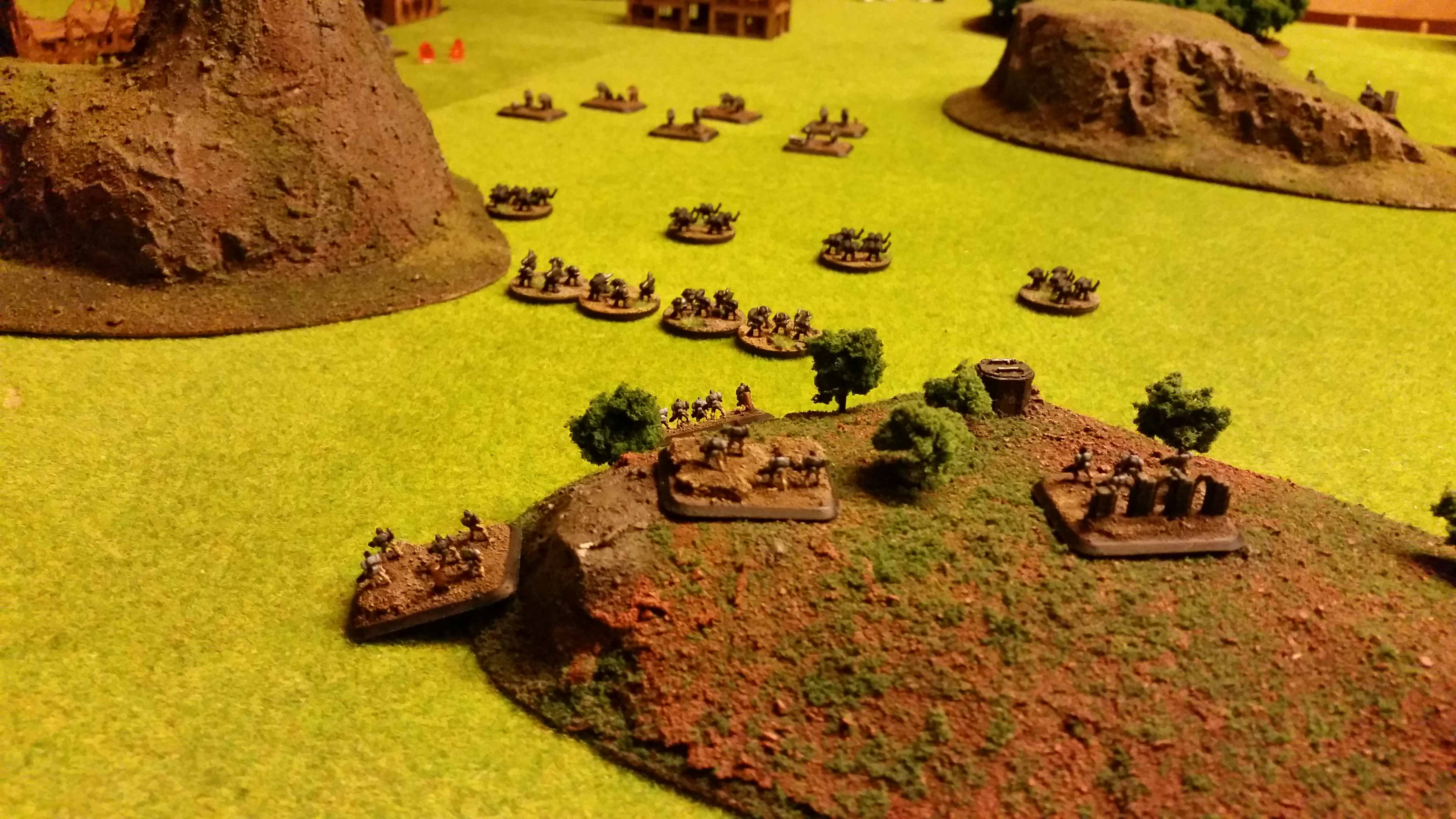 The main army would just charge head on and hope for the best. The Terminators would strike against the blitz or against a titan if able. Long Fangs started in OW a bit forward in the field, trying to discourage airassaults.