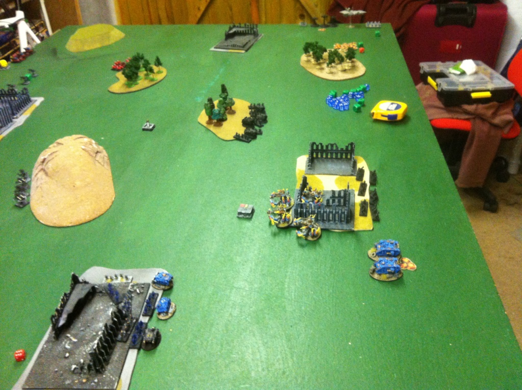 SH – Shining Spears engage the Terminators. Two rounds of combat ensue with the Shining Spears being wiped out and three terminators dying. Last on breaks away.