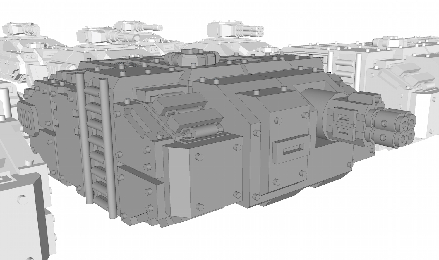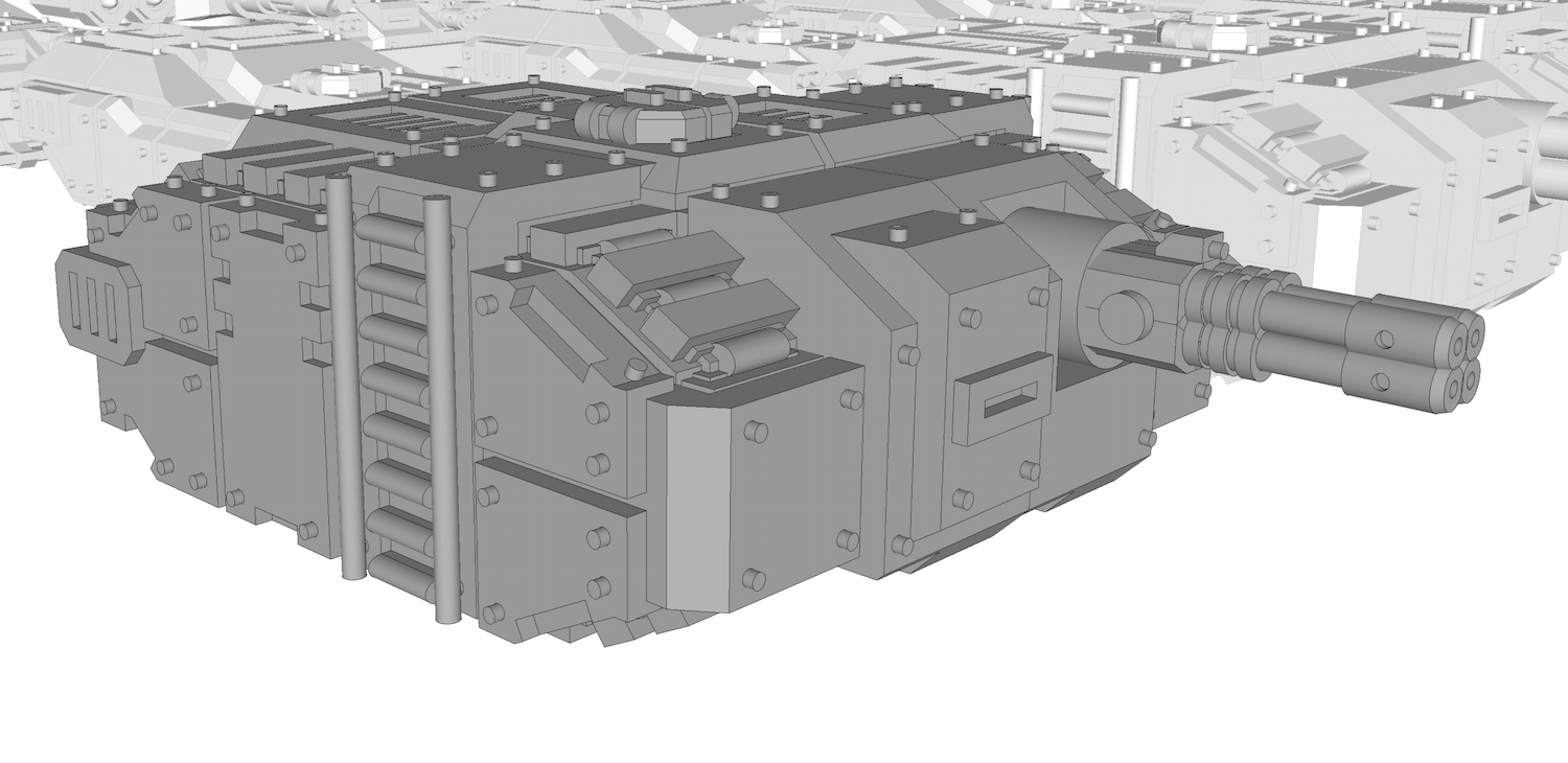 The Defender was produced as a stop gap design to hunt down enemy armour. Later on this weapon was placed on the Siege Tank hull which could handle the weapon better. I'm not that happy about the design of the weapon yet. In one hand the Laser Destroyer kinda feels like a