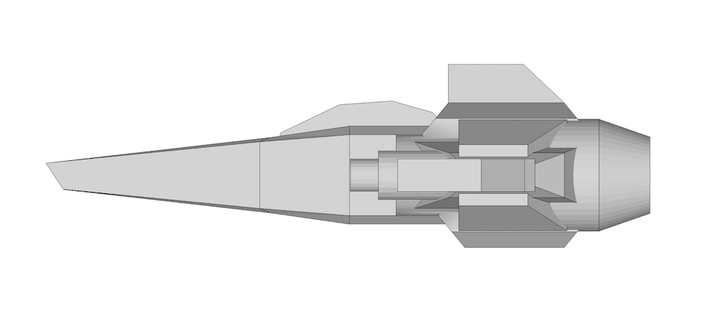 A blunted nose cone, or something similar to a battle star galactic viper nose.