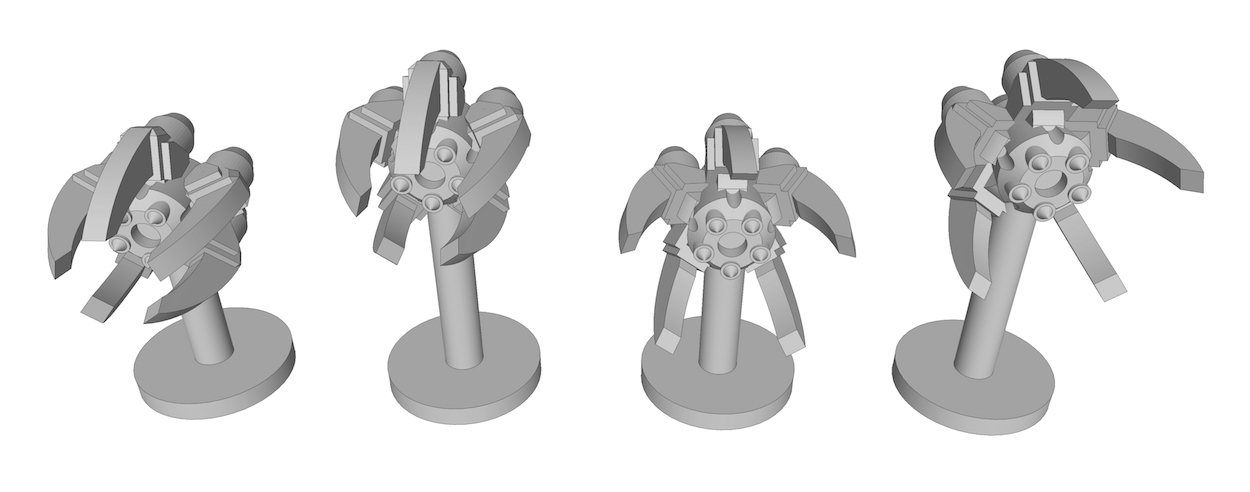 Space stations: got two variants, one with guns and another one with launch bays. -> some problems in the .stl file that need to be fixed before it's ready.