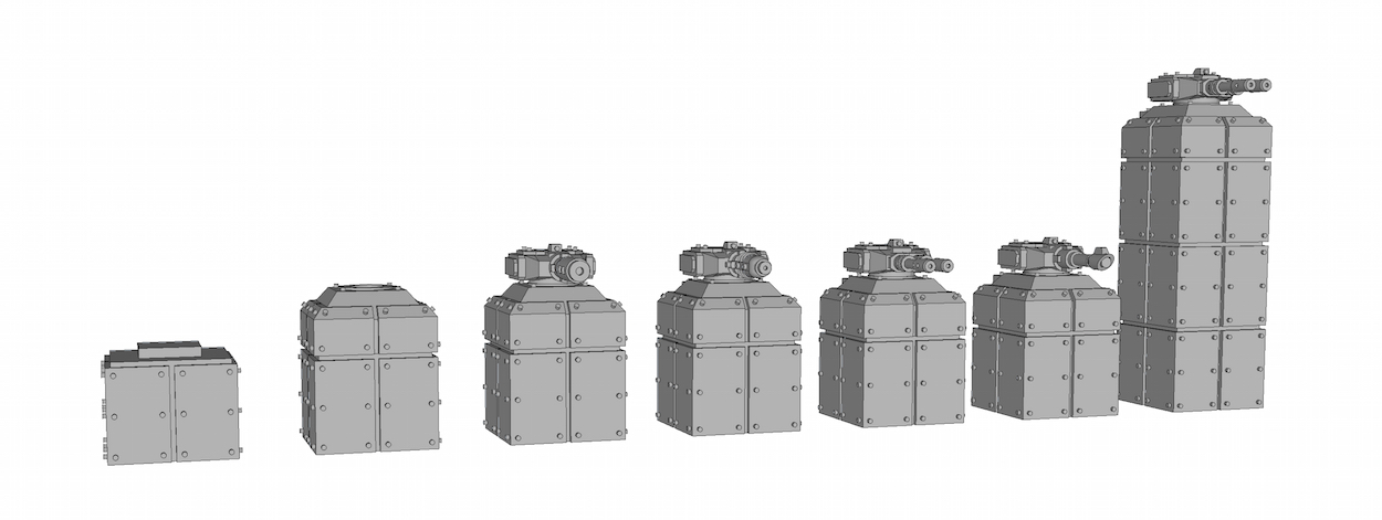 The evil and looted upgrade sprues have been put on hold as well. Problem is that these components are (a) a bit too fiddly and (b) when beefed up (for easier production) end up make the IVR look out of proportions. The best solution here is to probably to take the hull and turrets and tweak them to make them look evil or looted and then print those, rather than the adjustments being separate bits.