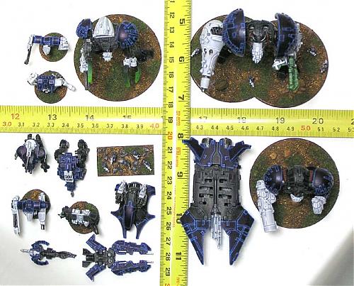 BUT - as a very useful stopgap how about rough assembling one of each vehicle, plus perhaps any oversize infantry in each range, plus a standard infantry stand, and photographing them together from different angles together with measuring stick? This is what I relied upon with Dark Realm purchases as below and it was very useful and stops hesitation by supplying the information you really need to make a purchase. They don't need to be painted.