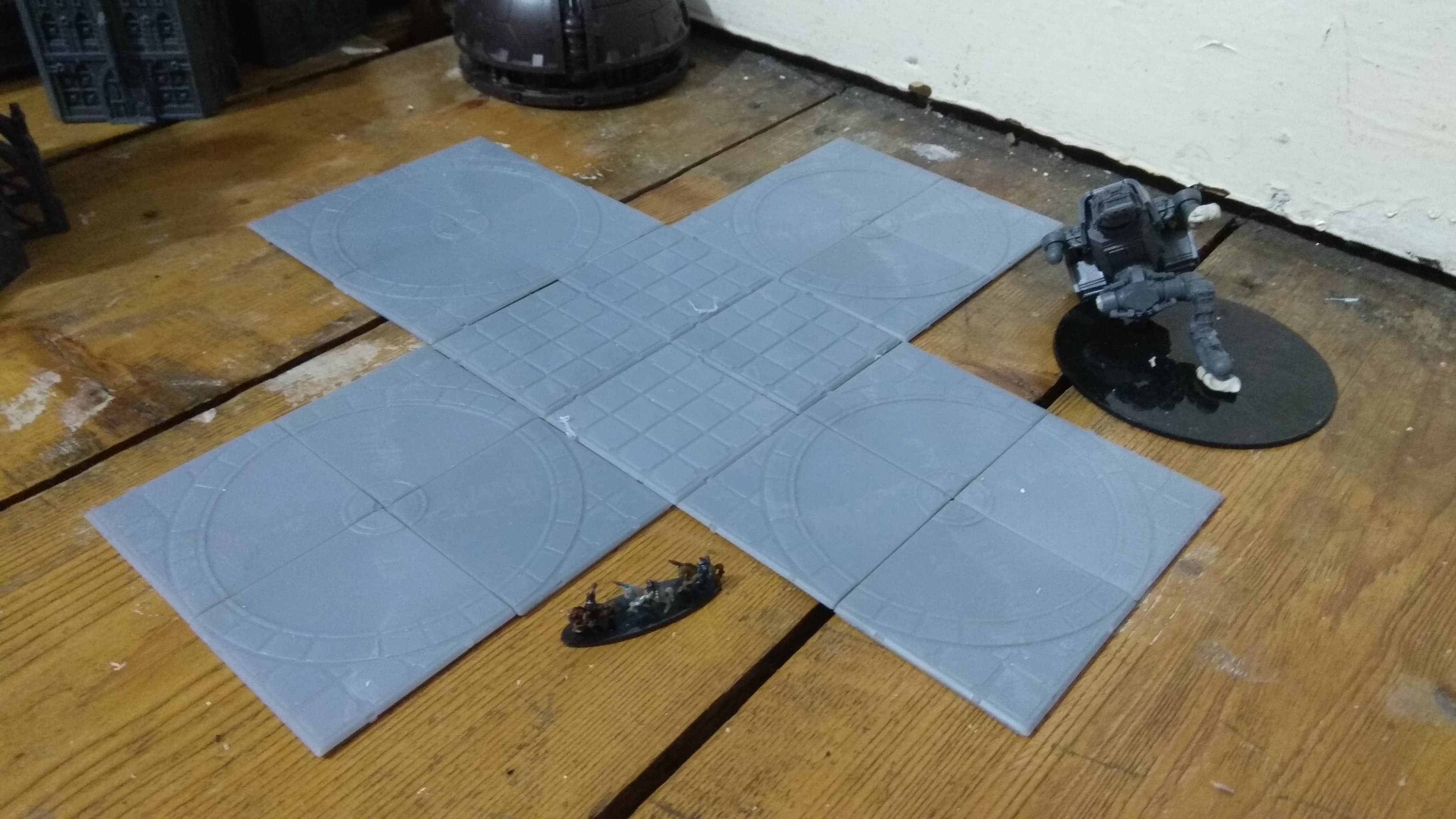I’ve laid out the roof for a big Medicae hospital I’m planning too which will have 4 landing pads for air ambulances on top (I’m thinking of using Arvus Lighters for them). There'll be a lift in the middle for people to get in (probably 4 of the smallest AT building doors glued together in a square).