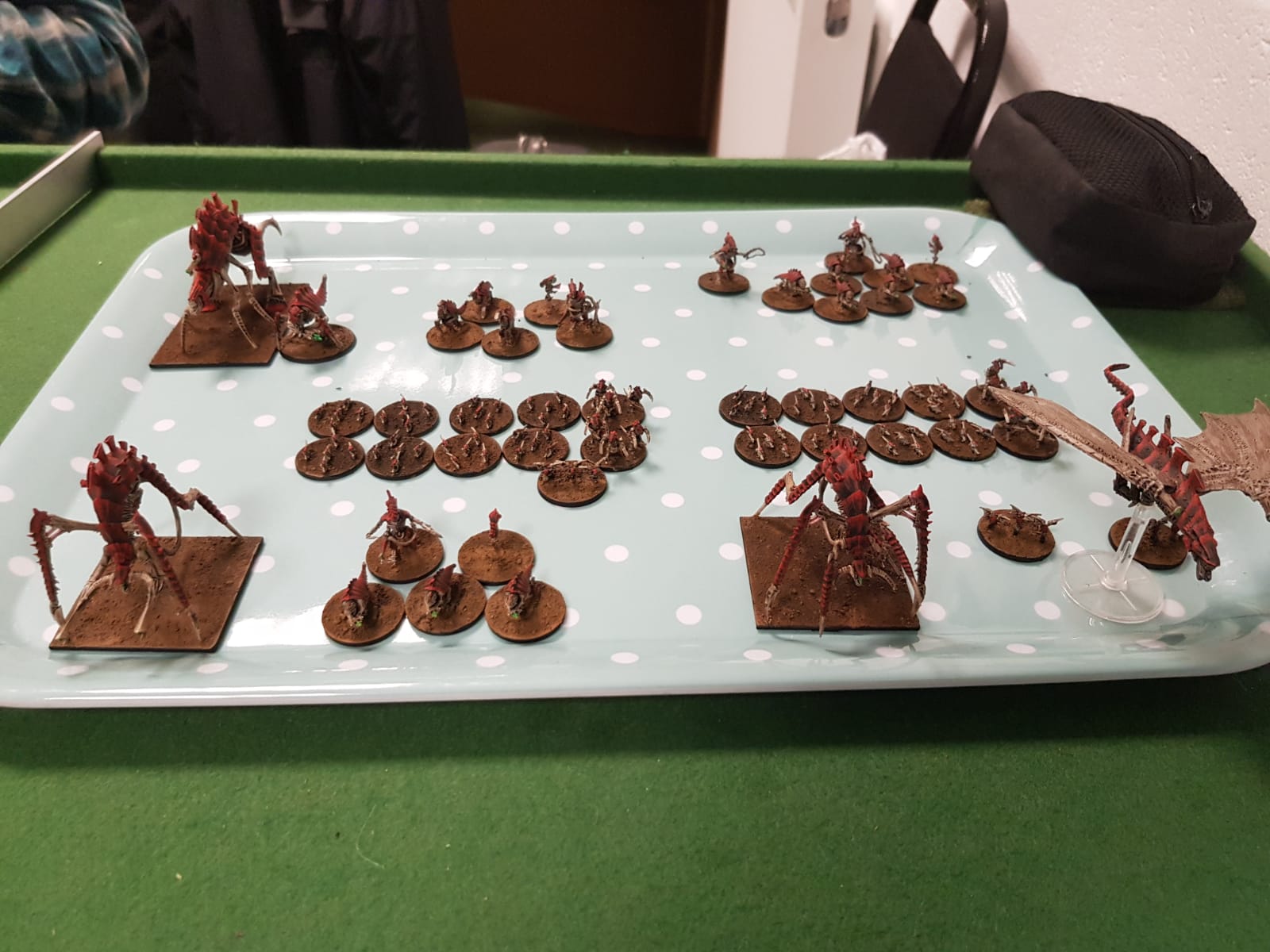 Game 2 – Lose first turn strategy roll off – Space Marine Barrage wrecks my game, but hard-fought battle losing in last two activations. 1-2 loss
