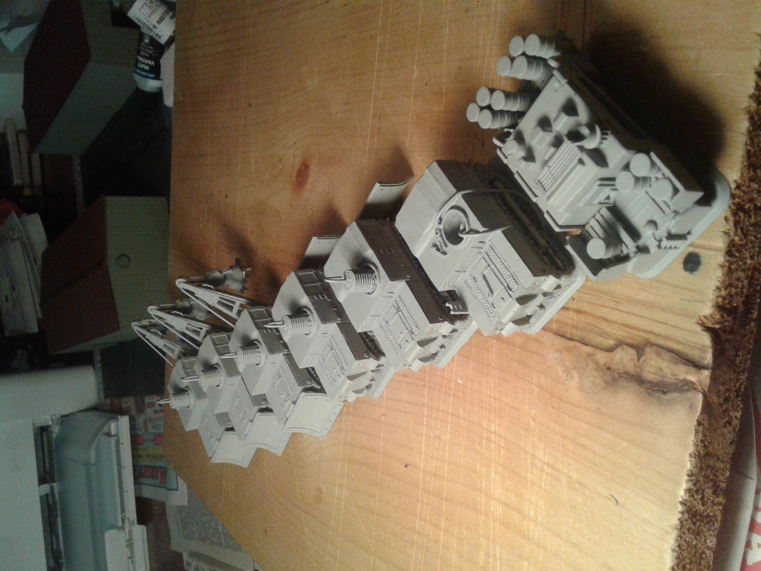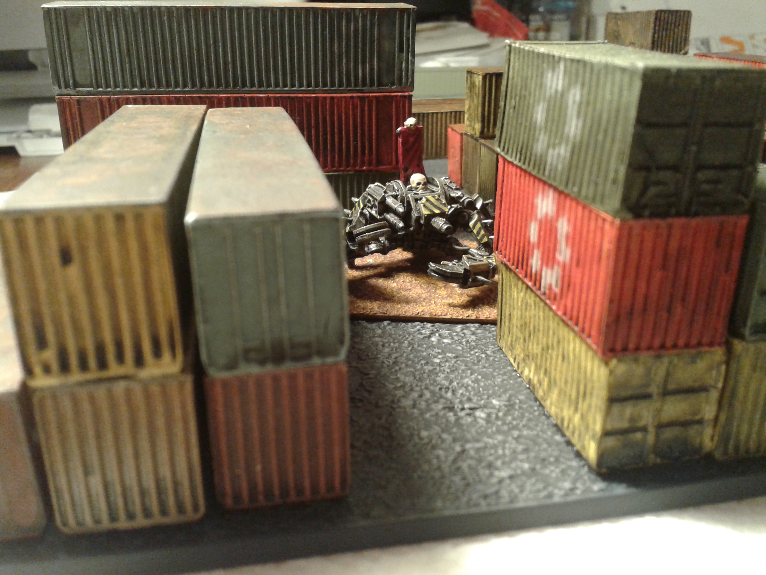 Thanks Jimmy! The wash didn't work as well as I had hoped on the various spray paints used, but it looks good enough. I also tried some rust and paint chipping techniques, on the smooth tops of the longer shipping containers. I used various paints and it turned out decent - pretty happy with it. Slapped several clearcoats on them and they're good to go. Two warehouses are on the painting table now.