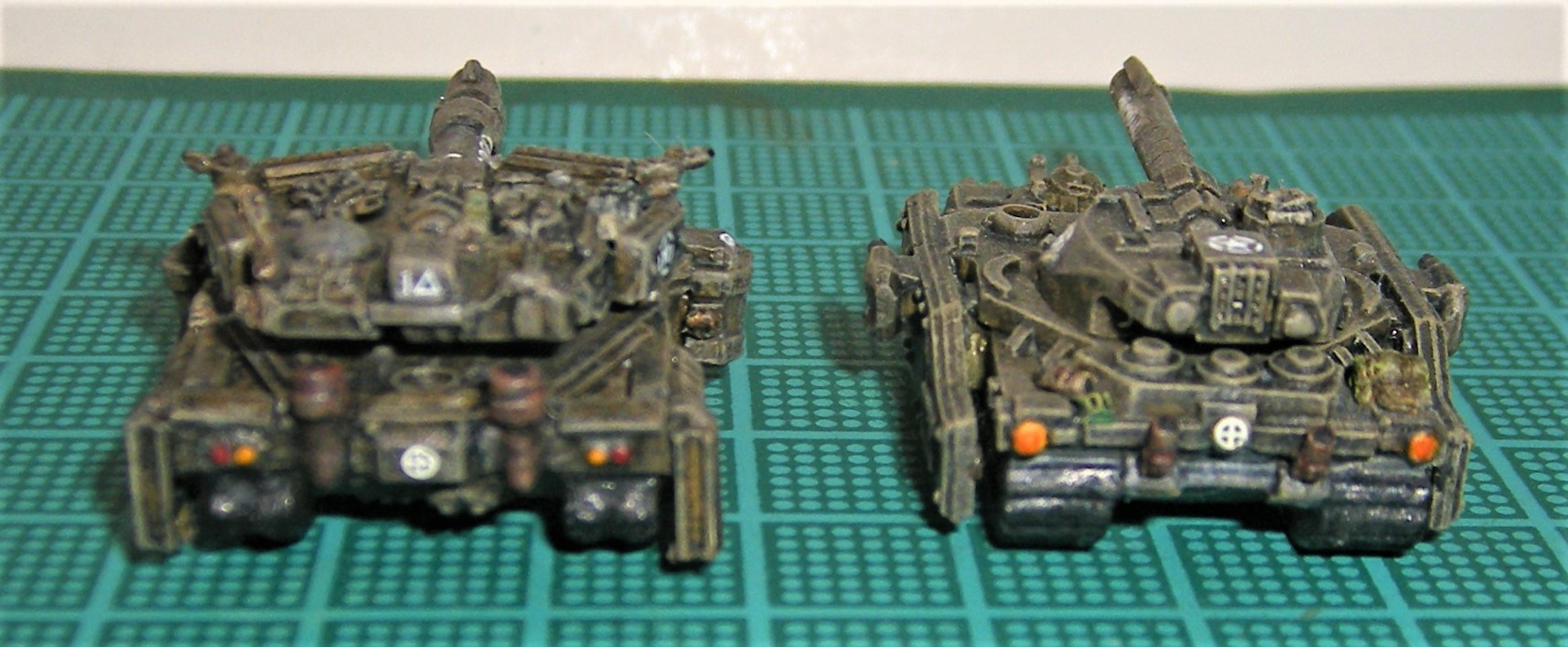 These are old OOP Exodus Wars models. I upgraded them with side skirts, add on armor, smoke grenade launchers are from Vanguard.