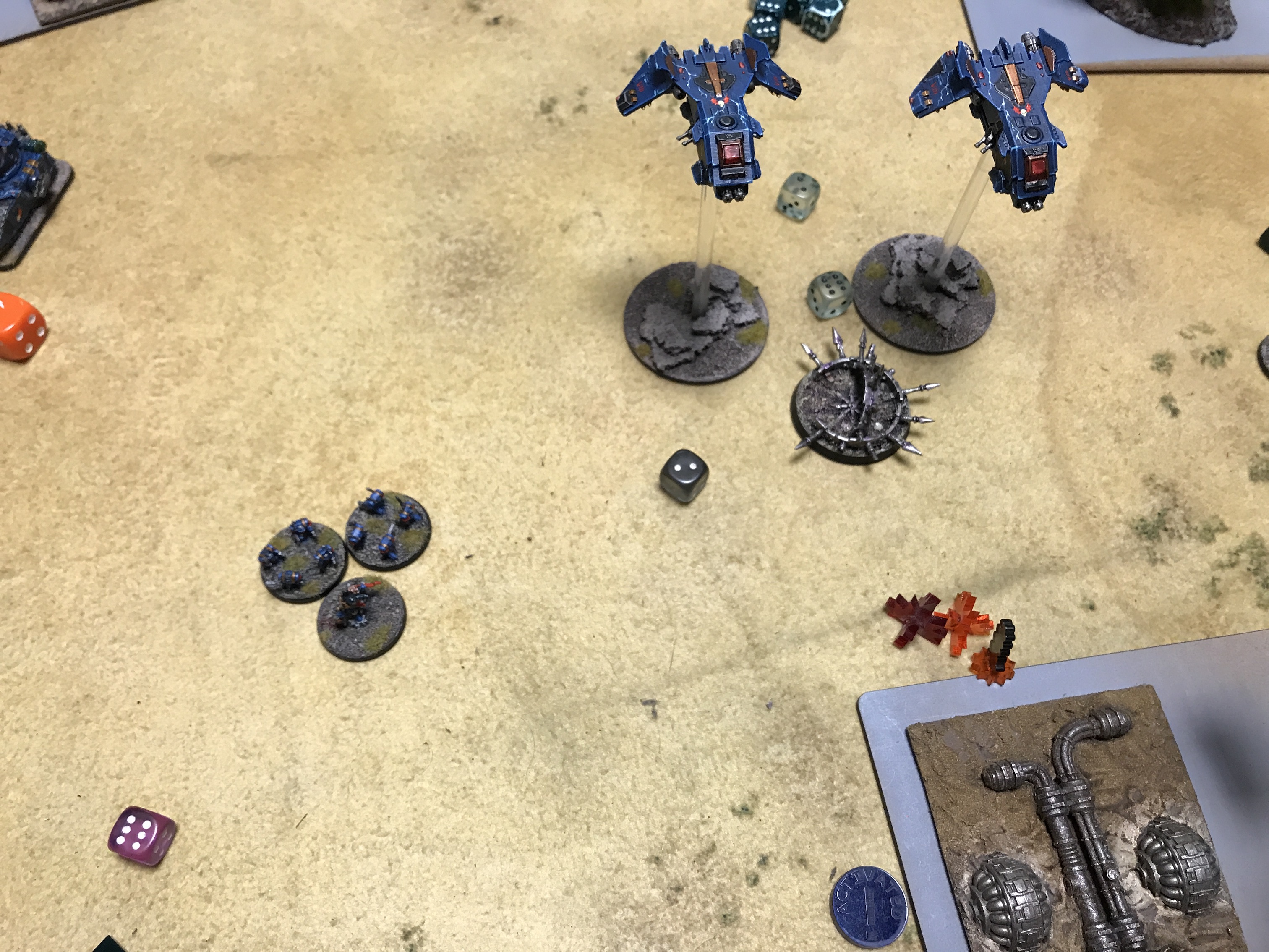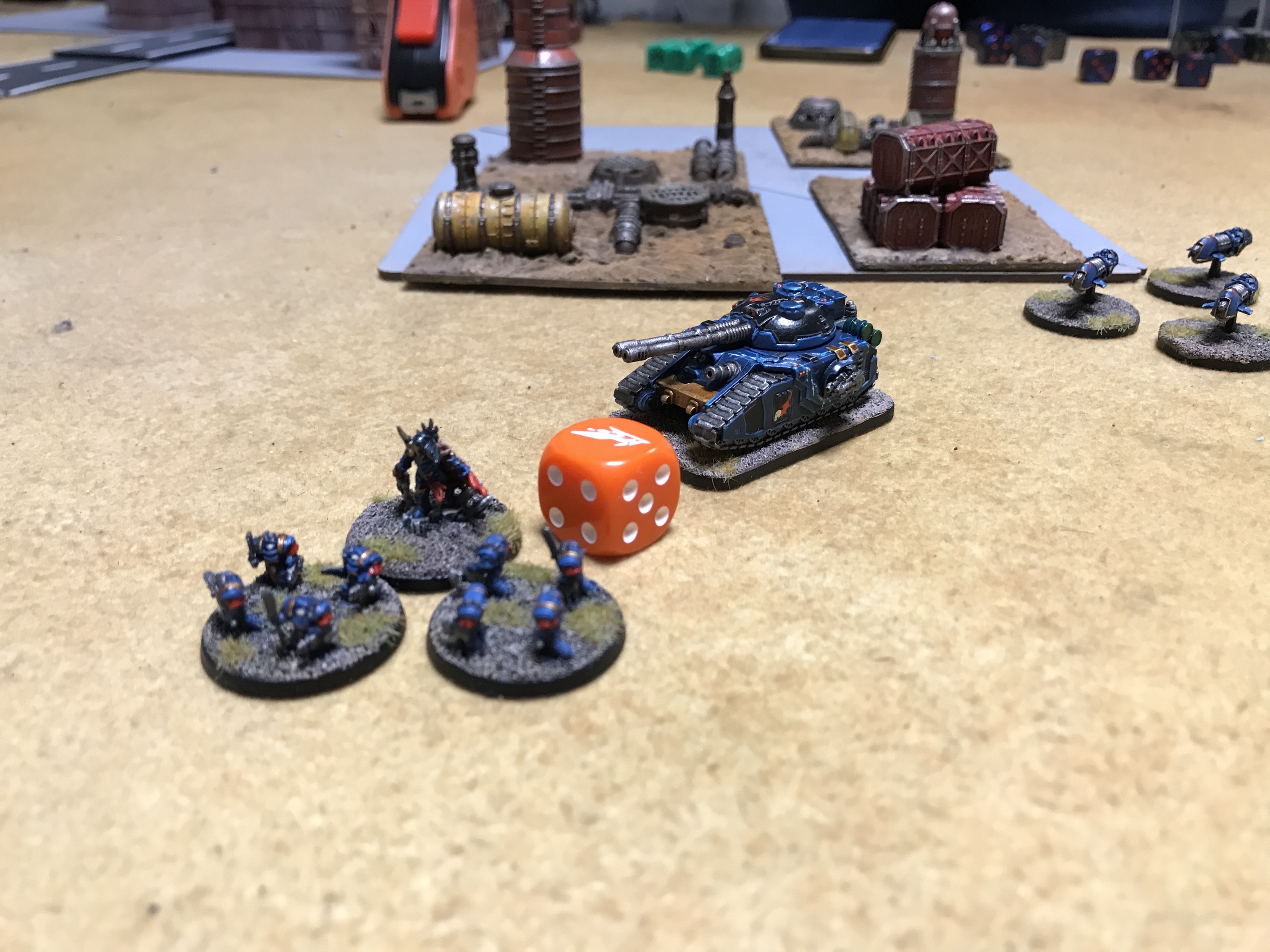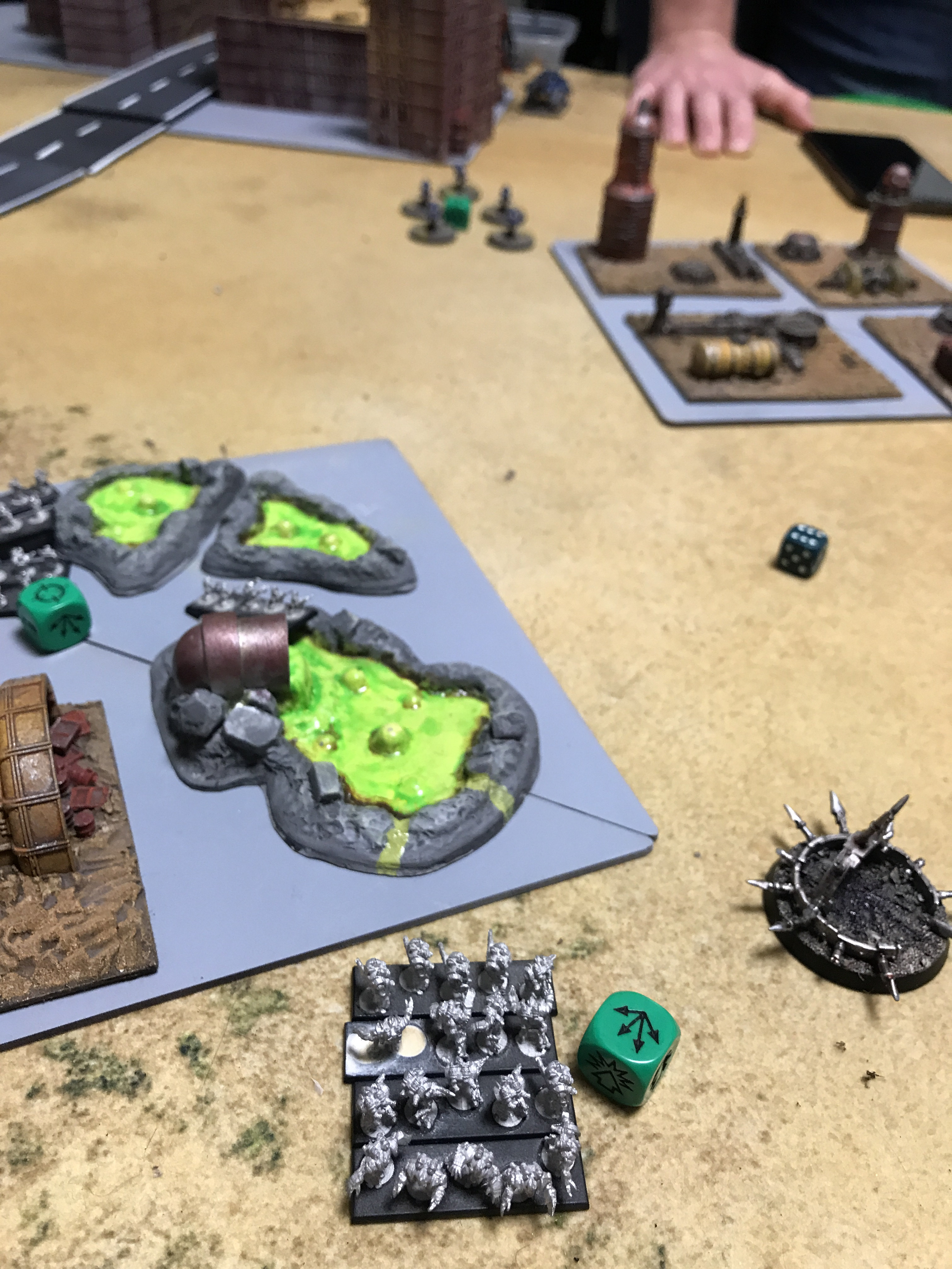 We decided the green toxic waste ponds terrain would count as marsh but also be dangerous terrain. I garisoned a couple of formations in the thing at the start, a little in from the edge so the marines would have to take dangerous terrain if they moved in.
