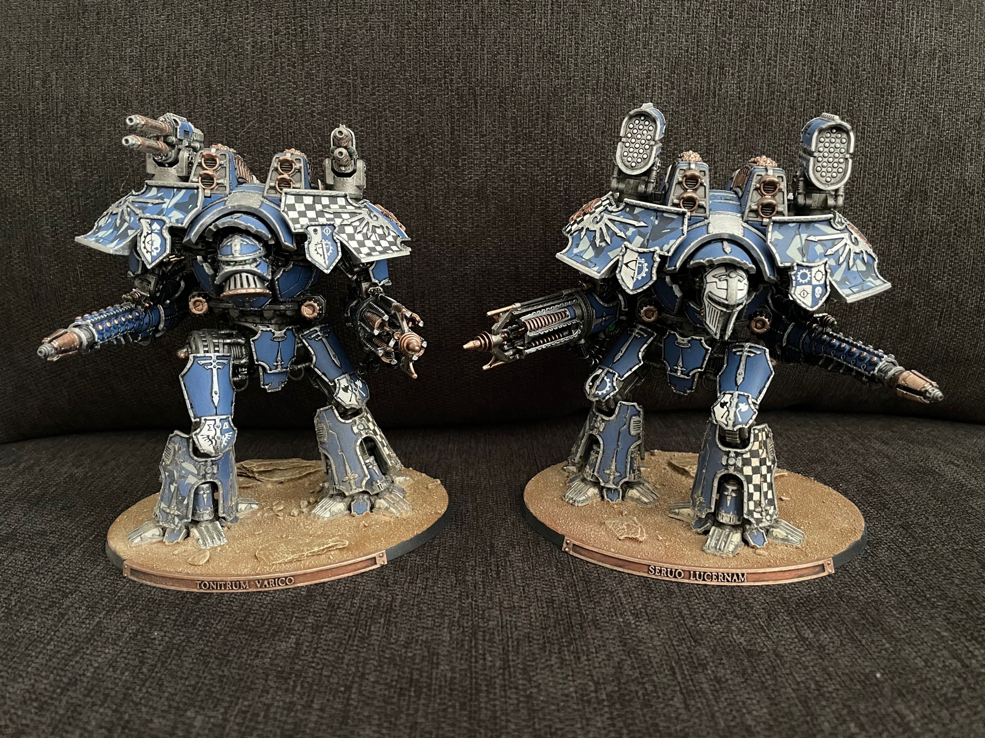 And here's the Questoris knights, pre-decals, sporting their new dual battle cannon arms: