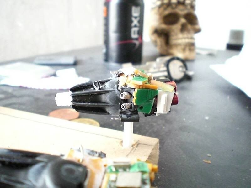 WIP Onslaught Escort. I wanted them to look quite different from the Ravager gunships partly because it's a bit hard to recognise the weapons on my Ork ships, but also the fact that I like some variation in modelling Ork ships!