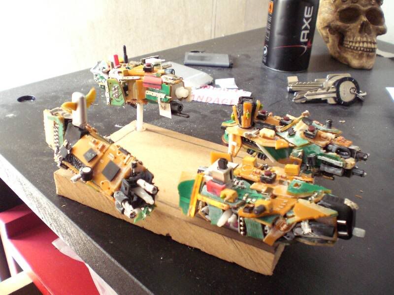 While these ships are very cool looking I've decided to take it even a step further. I'm planning to totally scratch built these ships and not use a single bit of GW (or any other modelling line) products. The ships will be made from various electronic bits (my brother donated his dead stereo for this cause already!), wheels from lighters and every other bit and bite I can get my hands on.