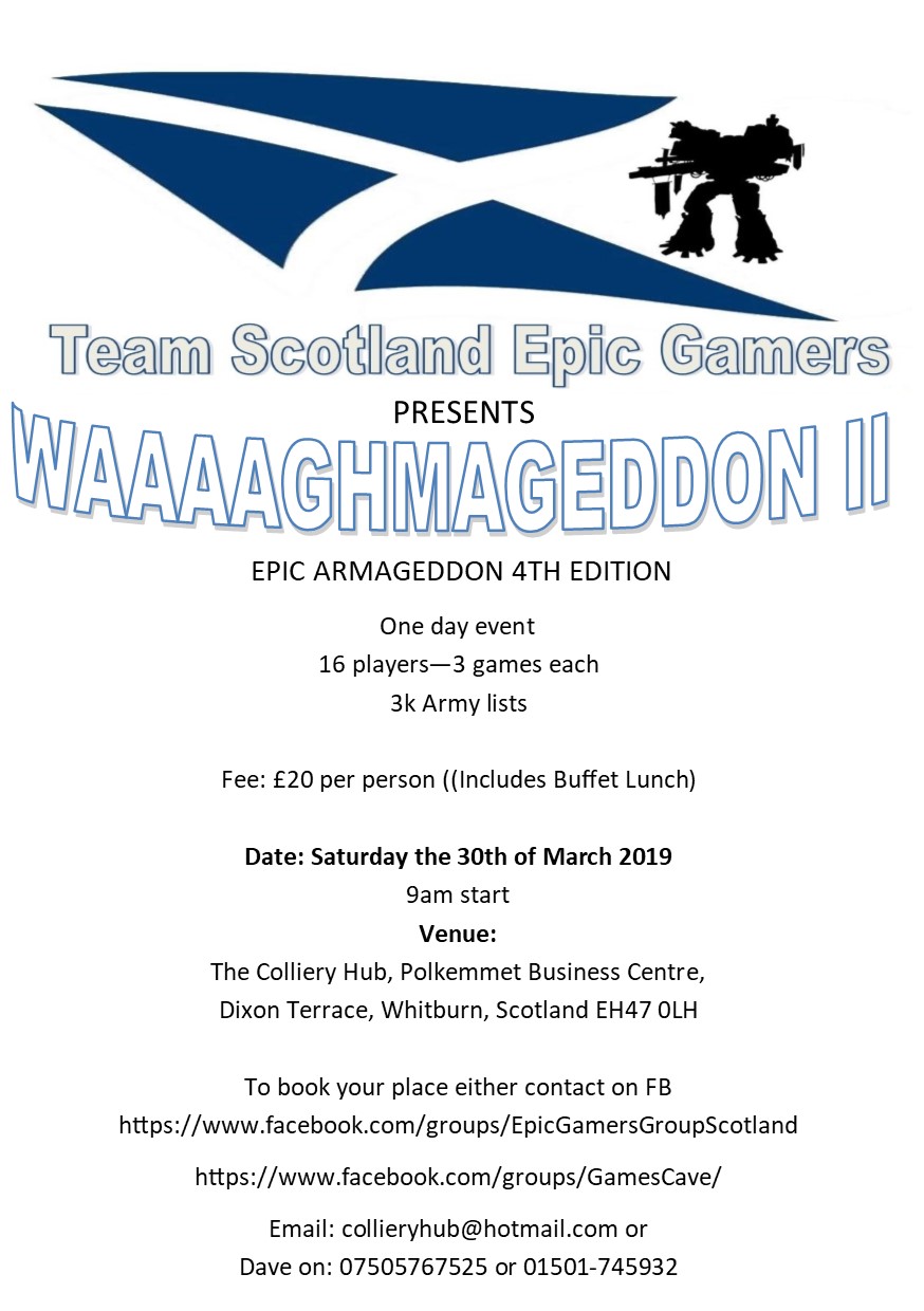 https://www.facebook.com/groups/GamesCave/https://www.facebook.com/groups/EpicGam ... pScotland/Please note: all proceeds with go to local community charity that supports the local Games Club.